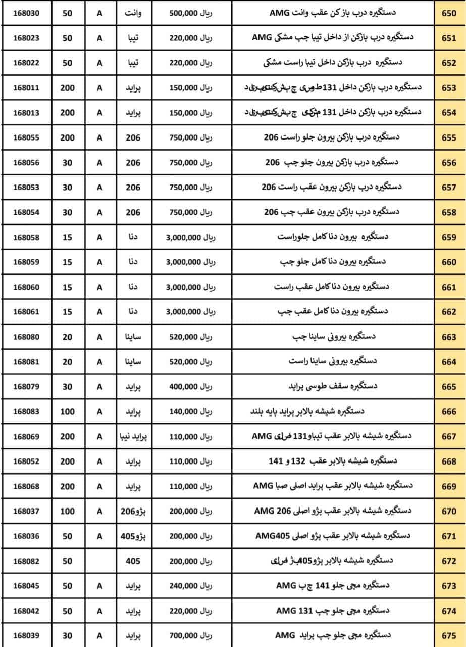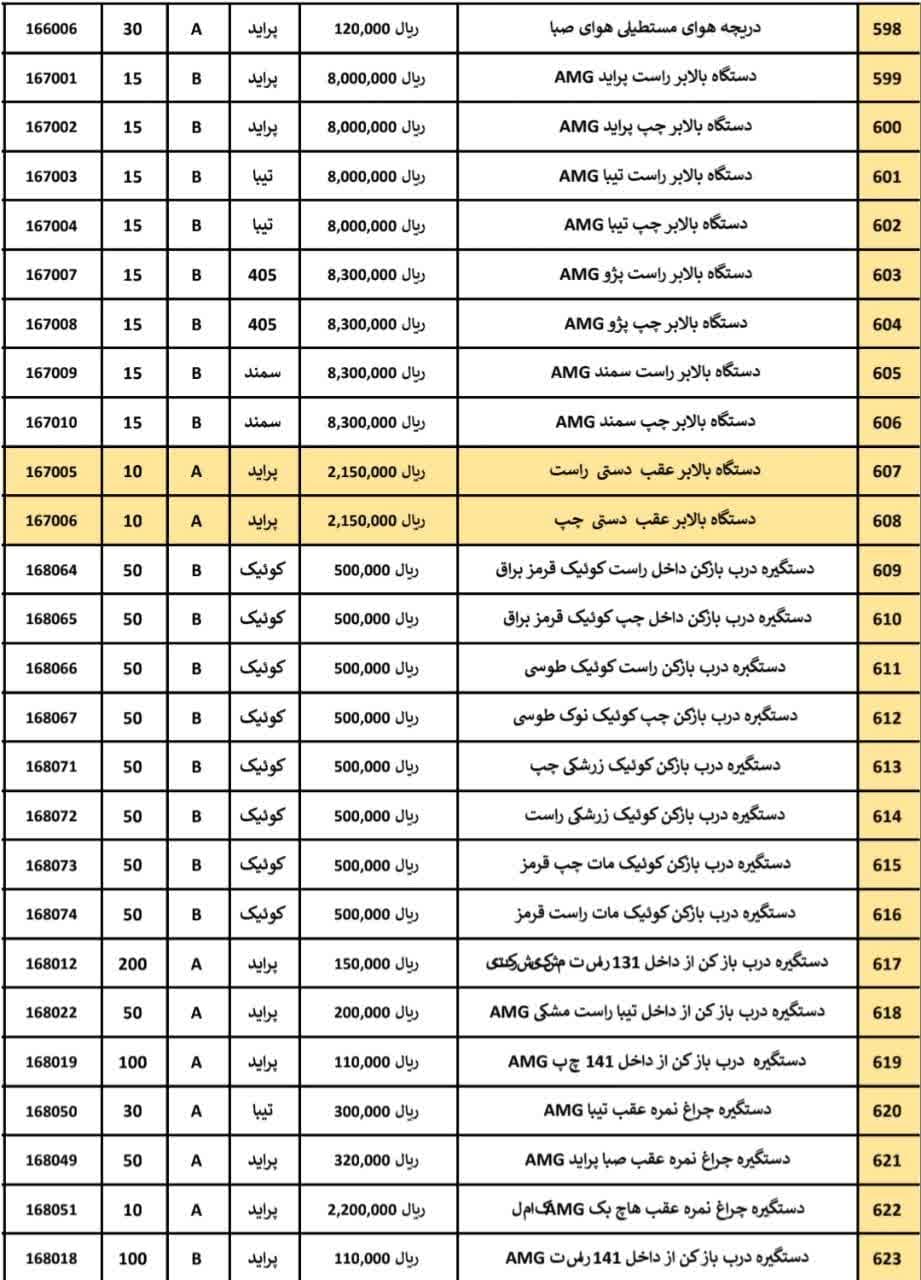 بدنه، برقی، میکانیکی، قاب های داخلی ، آینه ها، آبگیر و غیره
