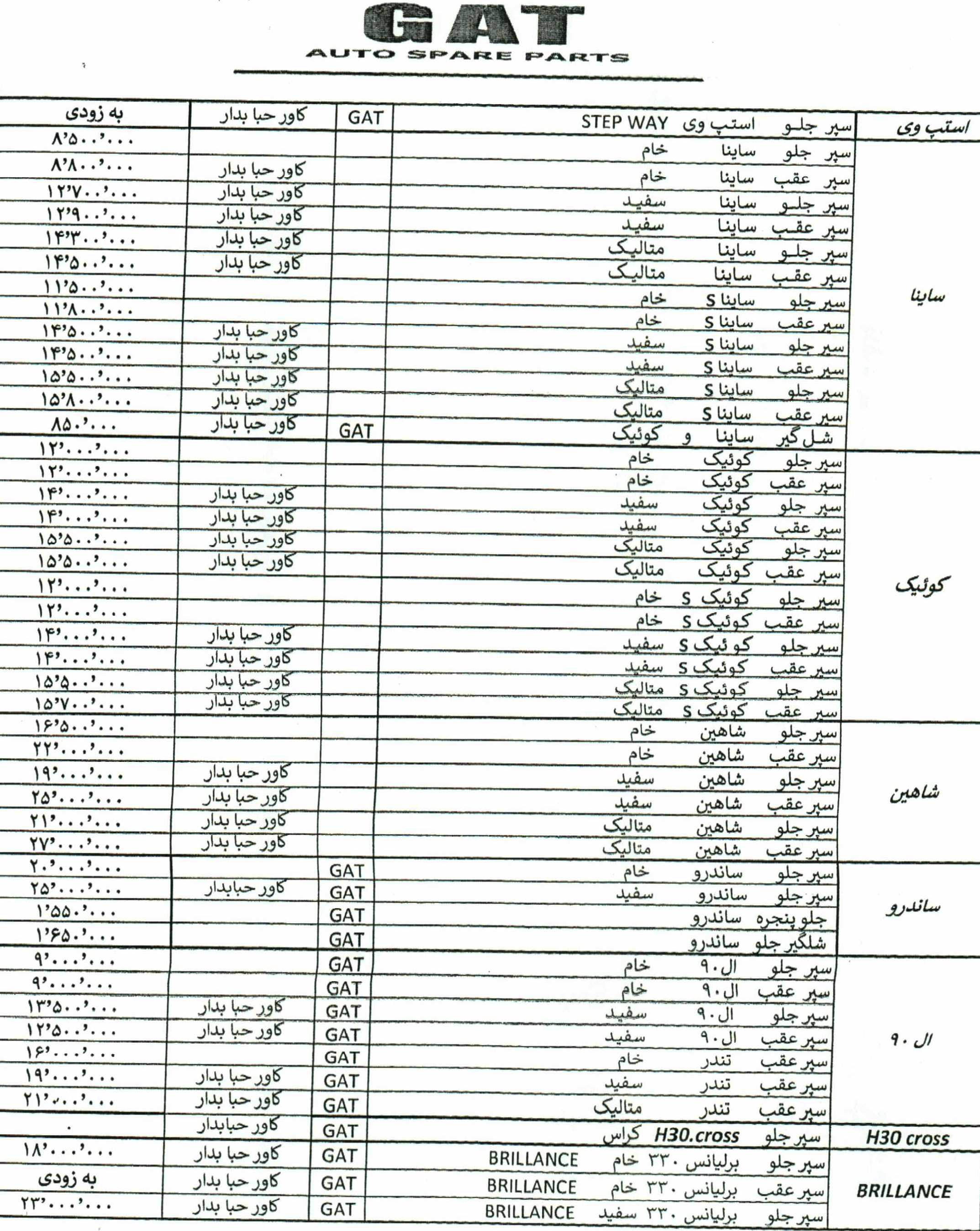 زه سپر عقب پارس چپ و راست