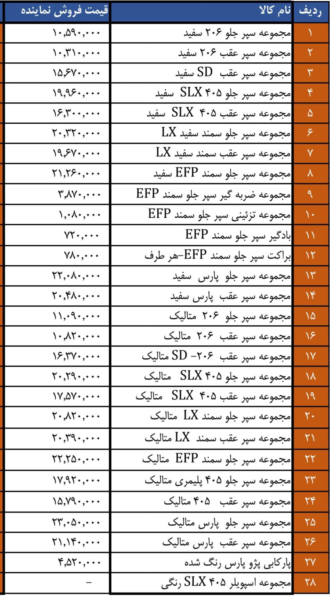 مجموعه سپر جلو سمند efp سفید |
