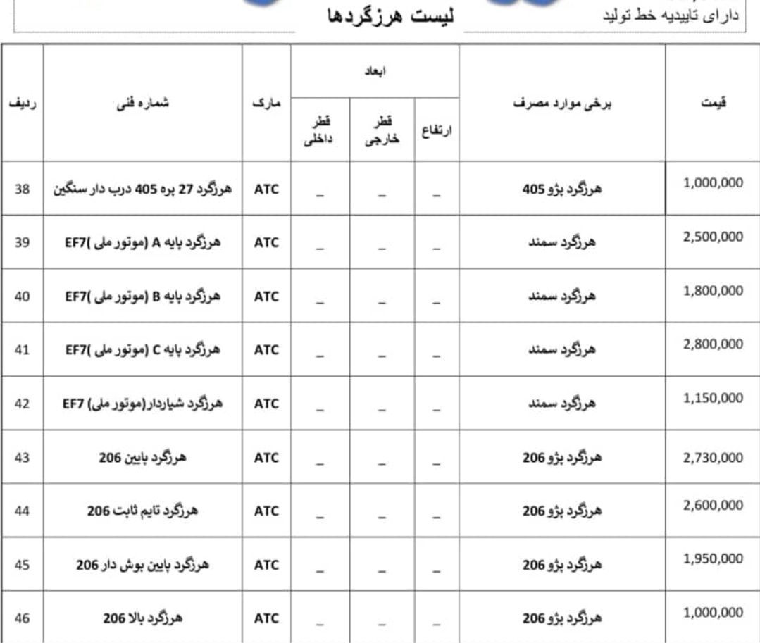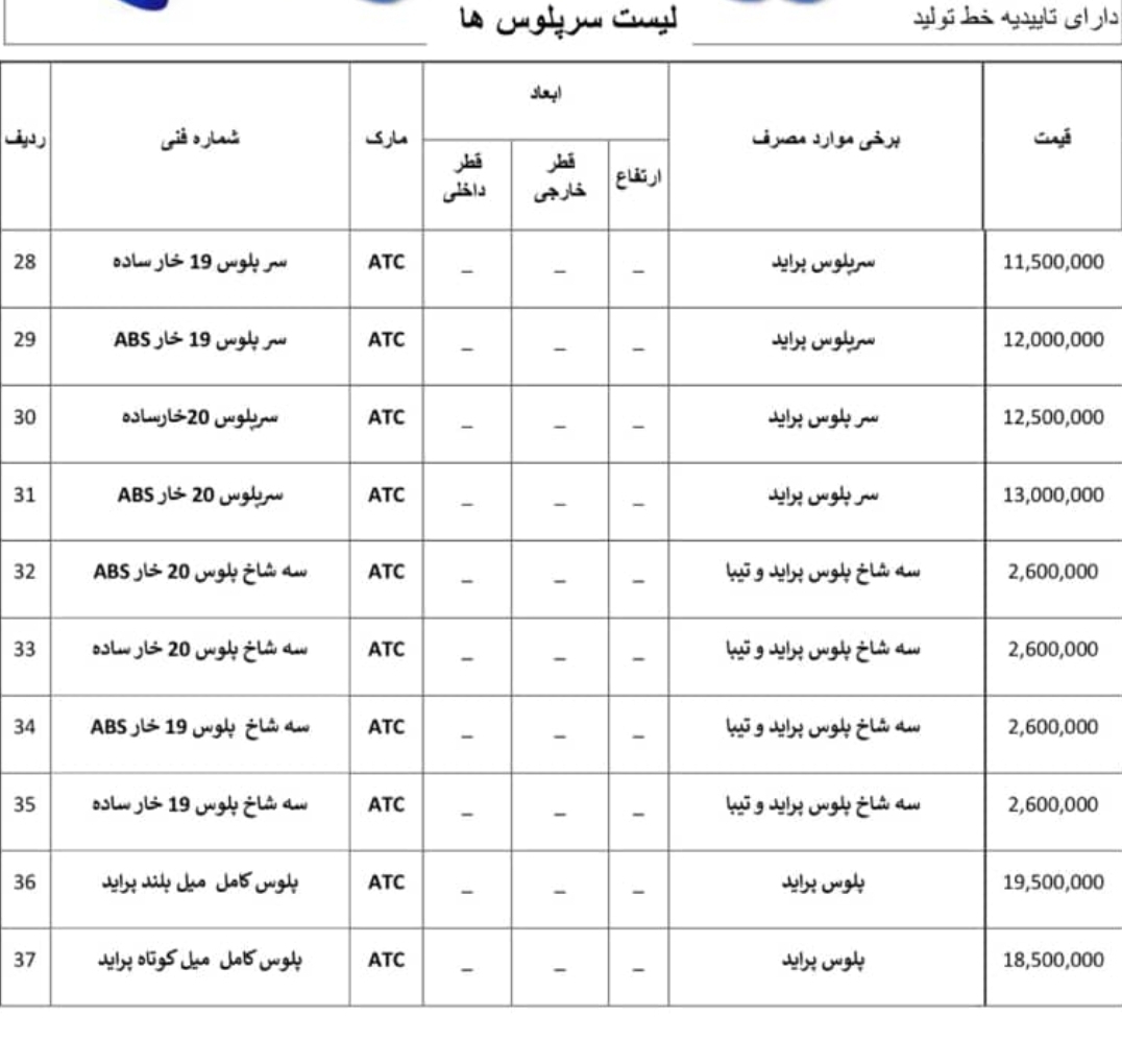 لیست بلبرینگ و سرپلوس و قطعات مصرفی دیگر ATC گریدA با یکسال گارانتی بی قیدو شرط