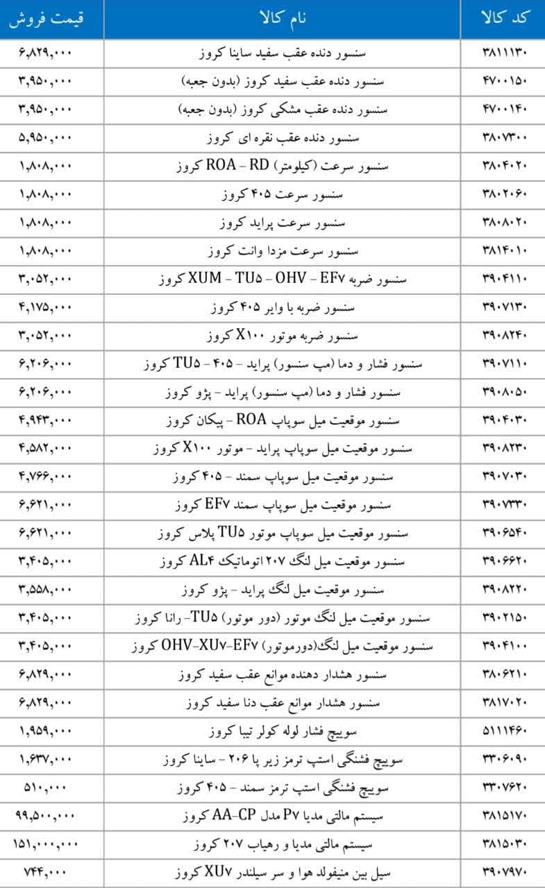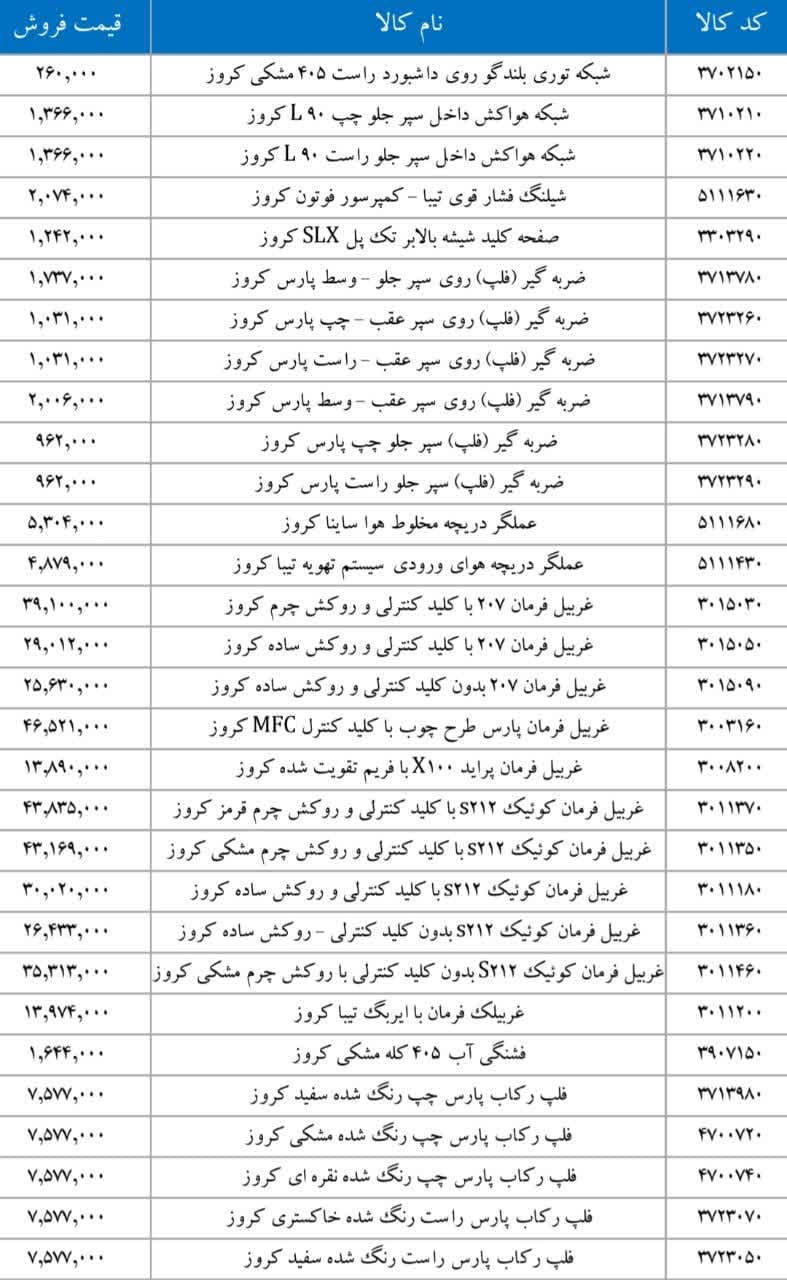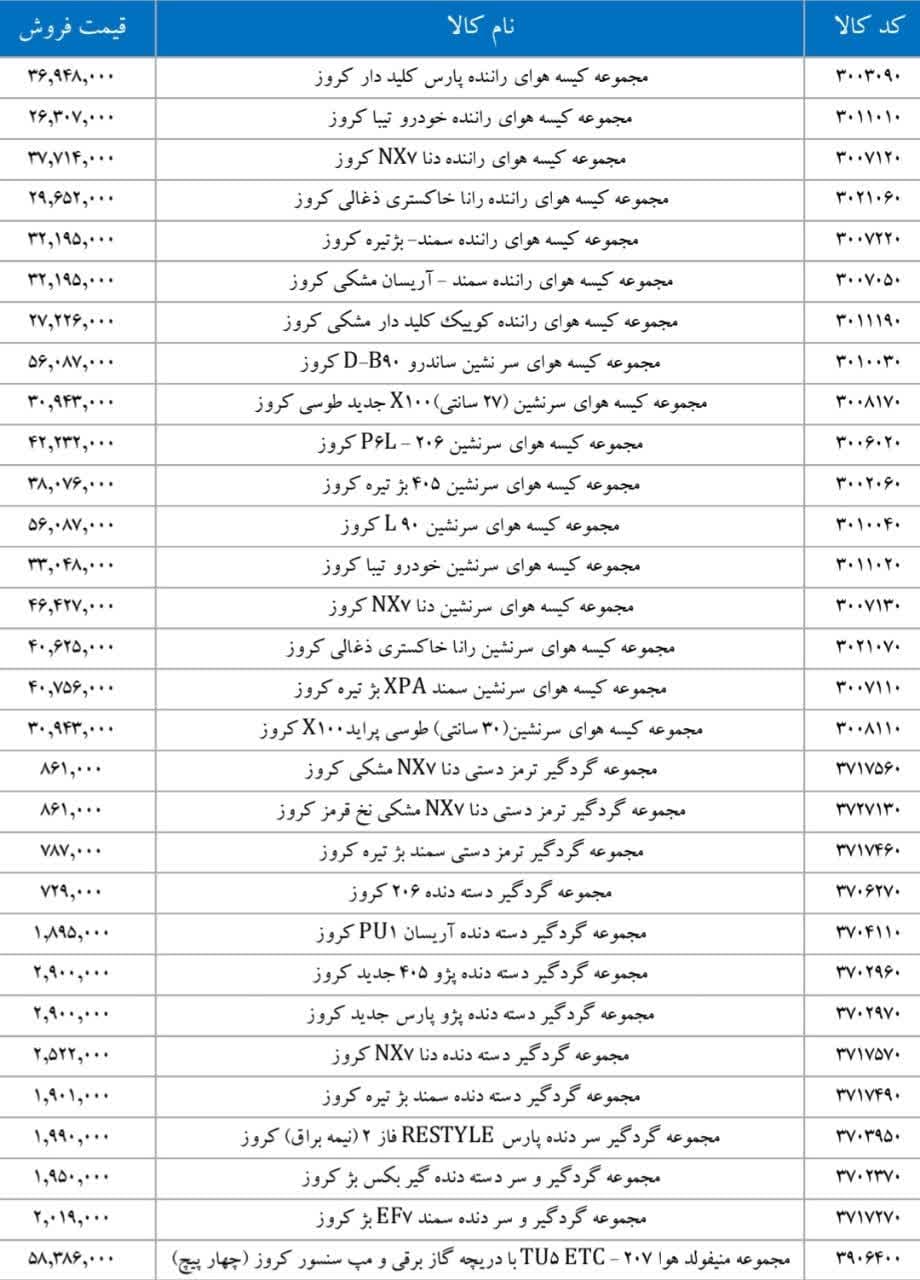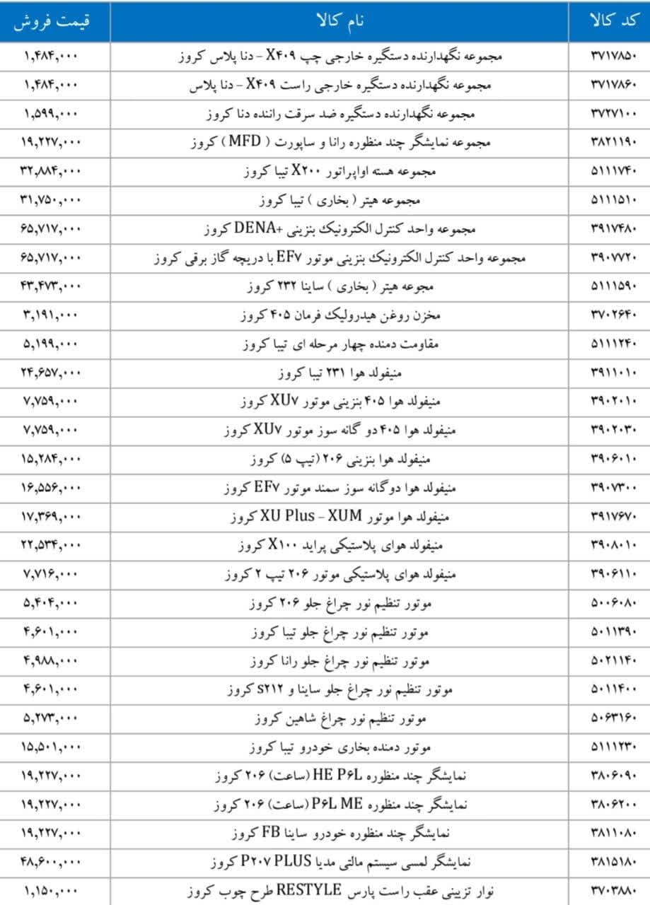 پراید X۱۰۰ کروزرادیاتور بخاری تیبا کروزرایانه کیسه هوای رانا ۴FL