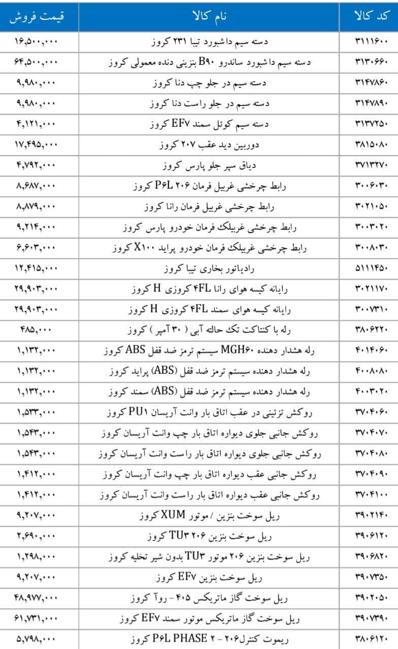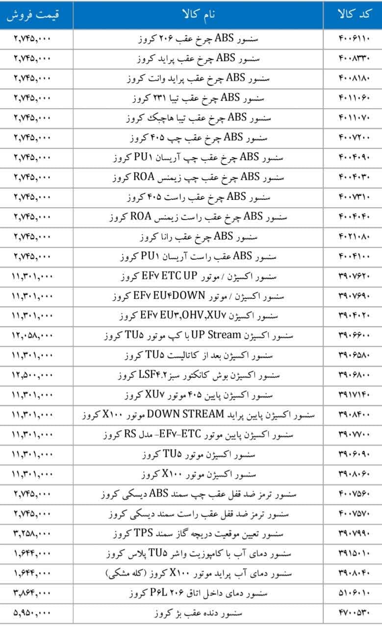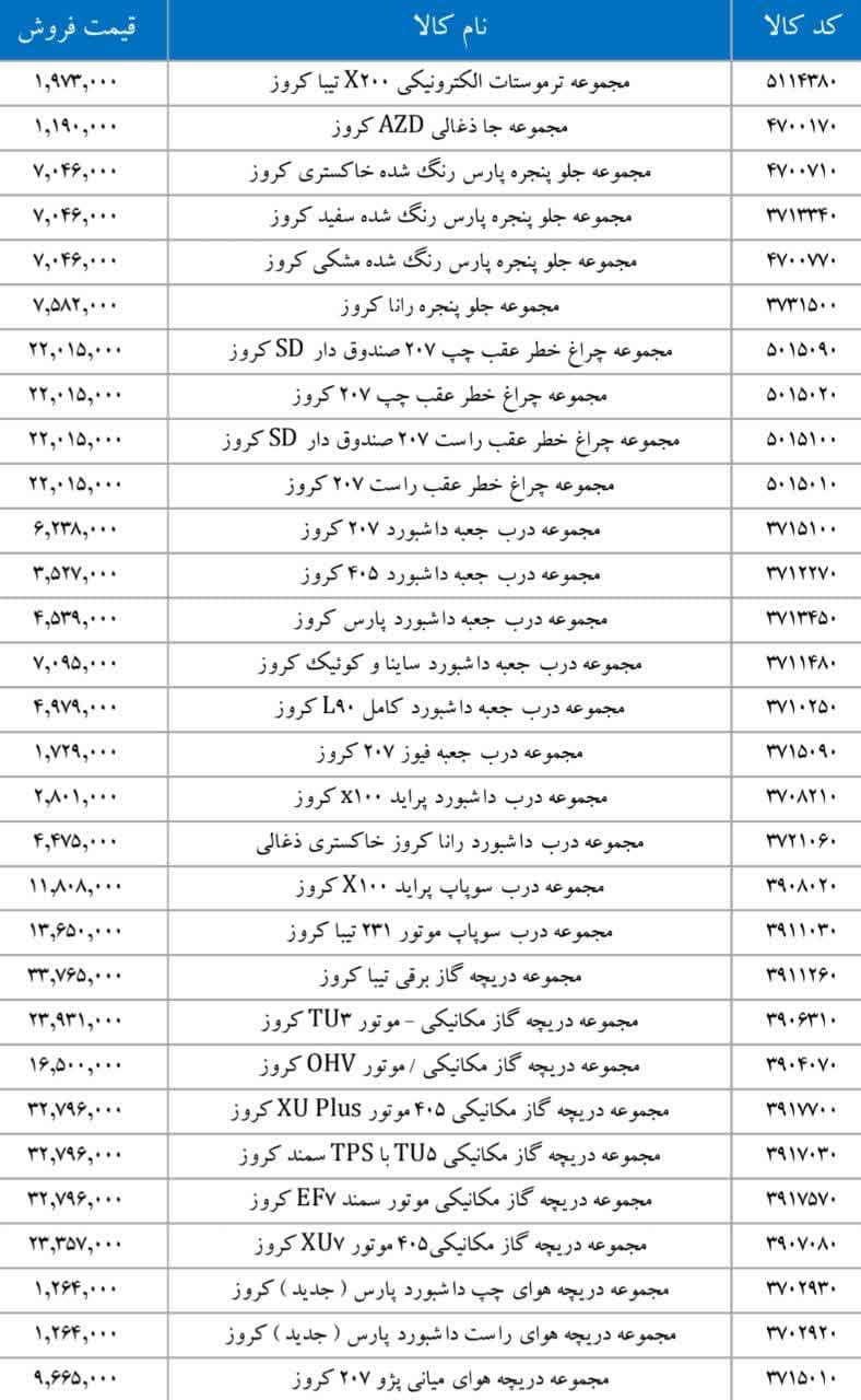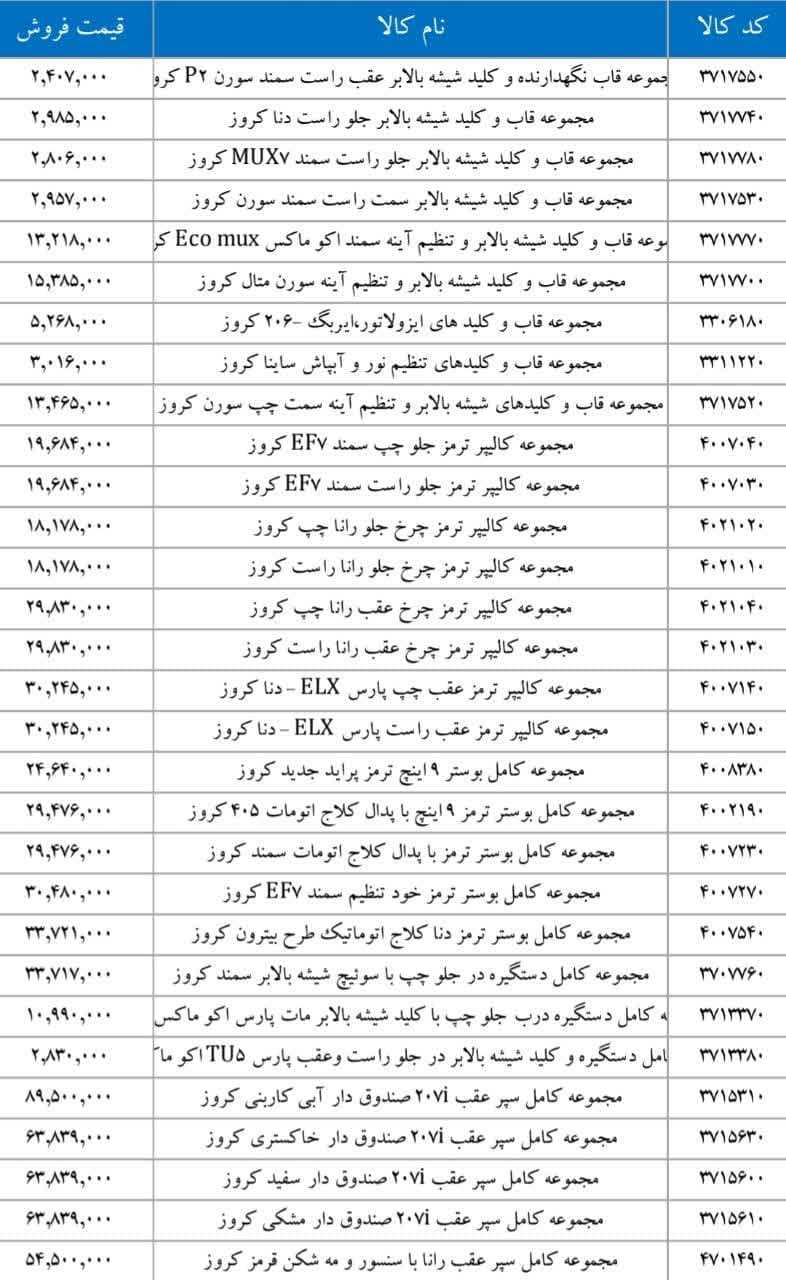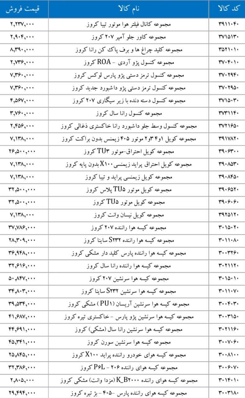پراید X۱۰۰ کروزرادیاتور بخاری تیبا کروزرایانه کیسه هوای رانا ۴FL