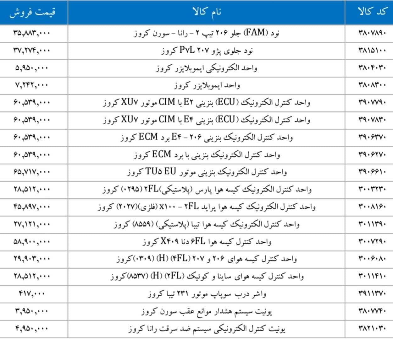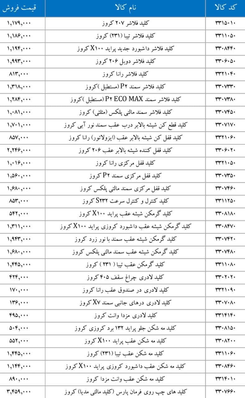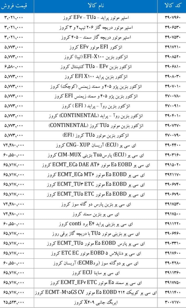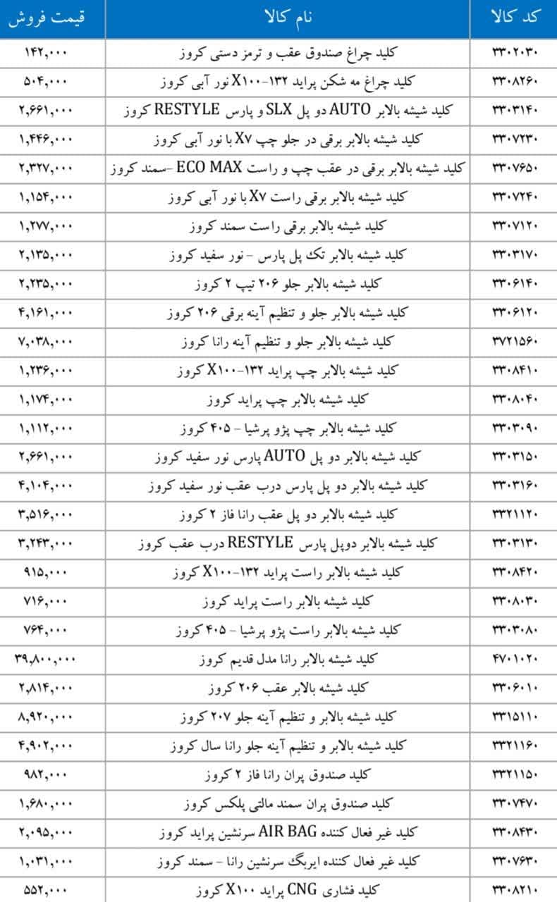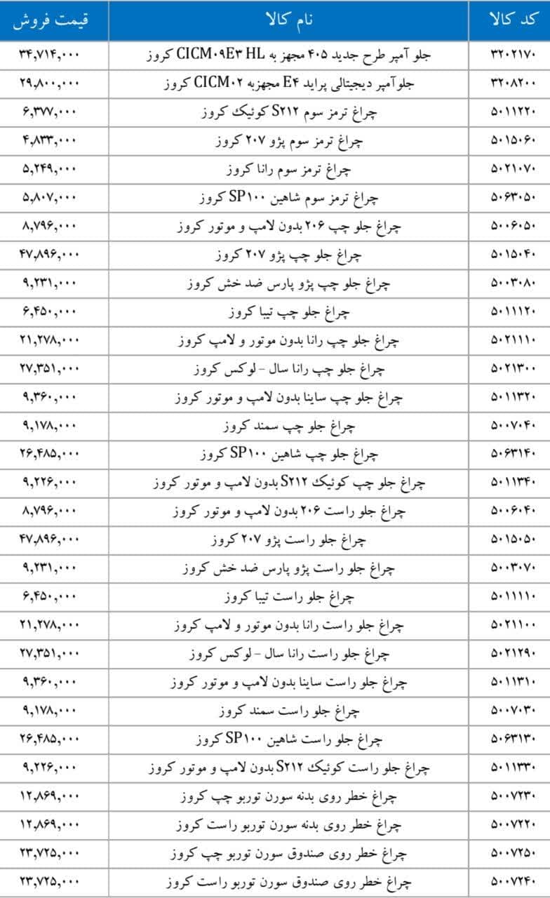 پراید X۱۰۰ کروزرادیاتور بخاری تیبا کروزرایانه کیسه هوای رانا ۴FL