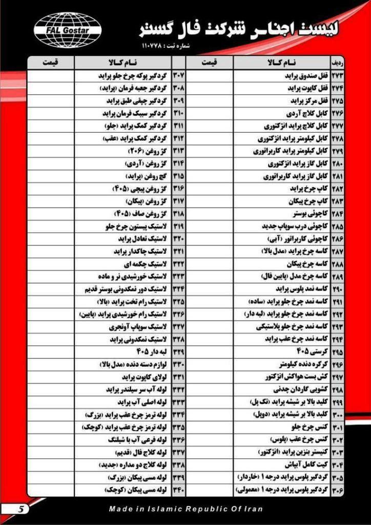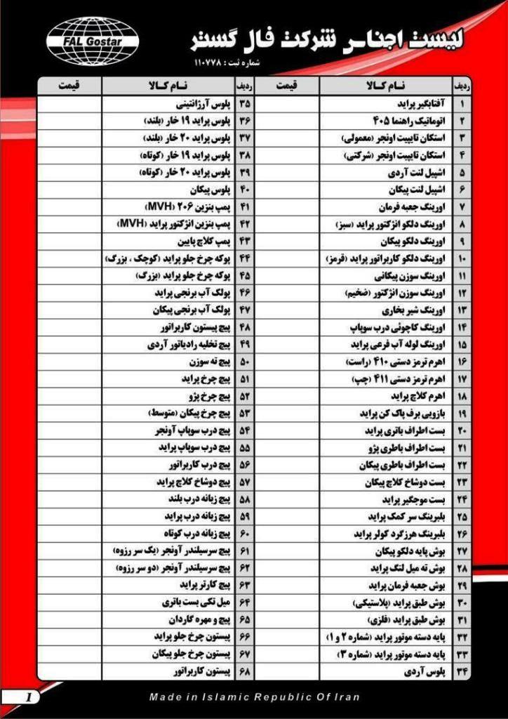 به دلیل نوسانات قیمتها امکان بروز رسانی آن وجود ندارد