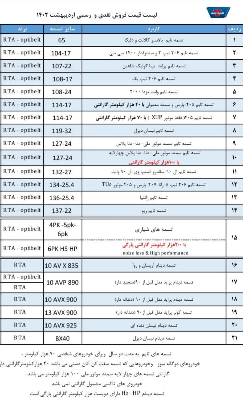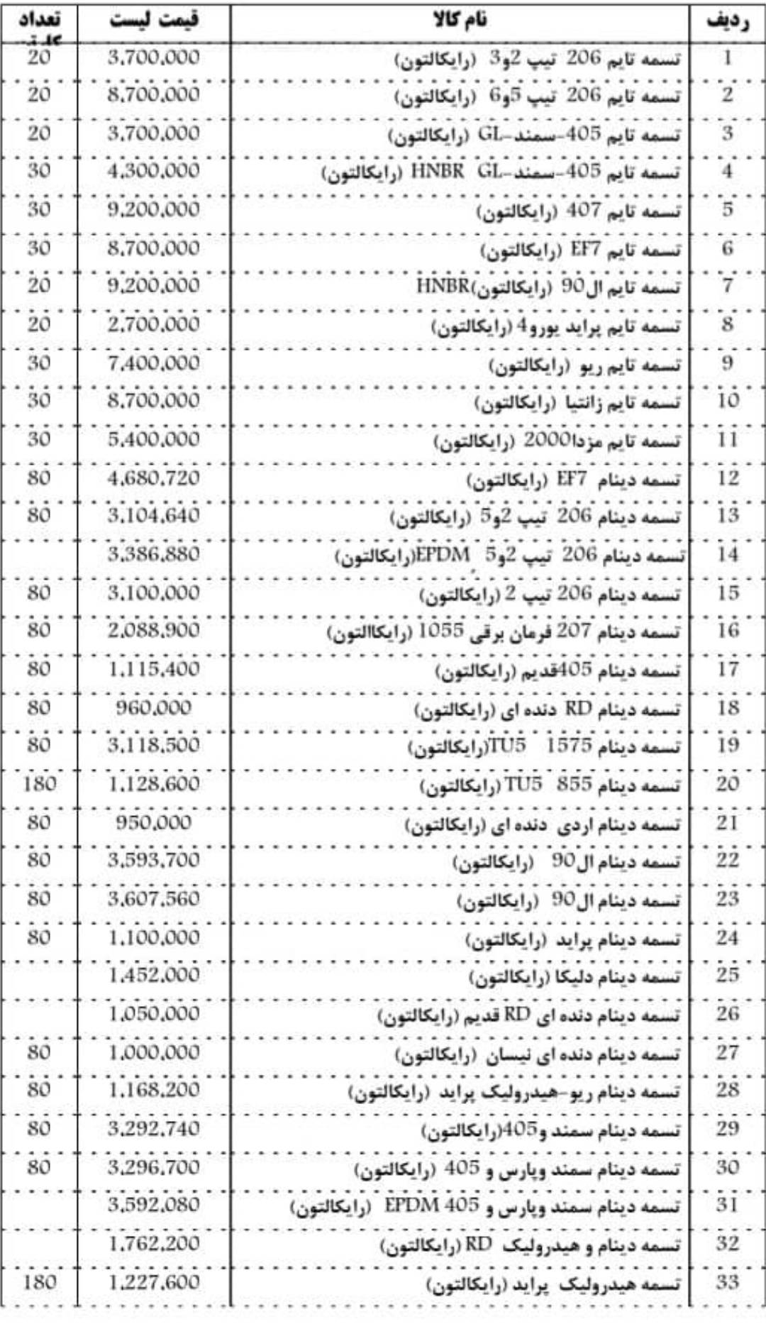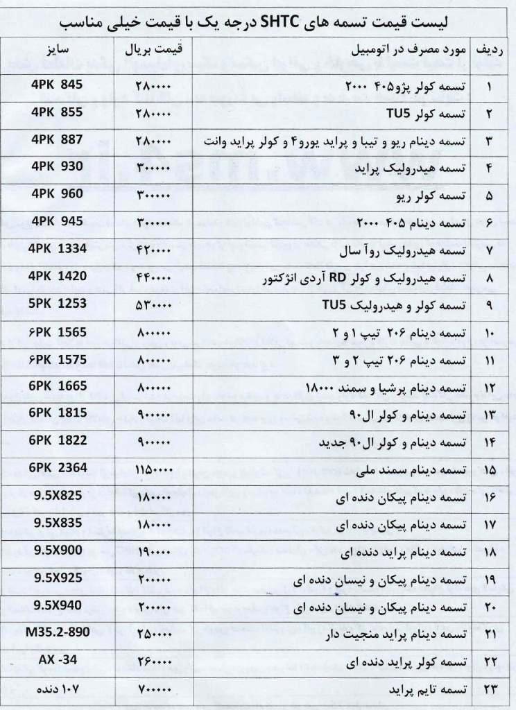 لیست قیمت تسمه های SHTC درجه یک با قیمت بسیار عالی