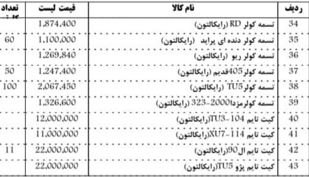 به دلیل نوسانات قیمتها امکان بروز رسانی آن وجود ندارد
