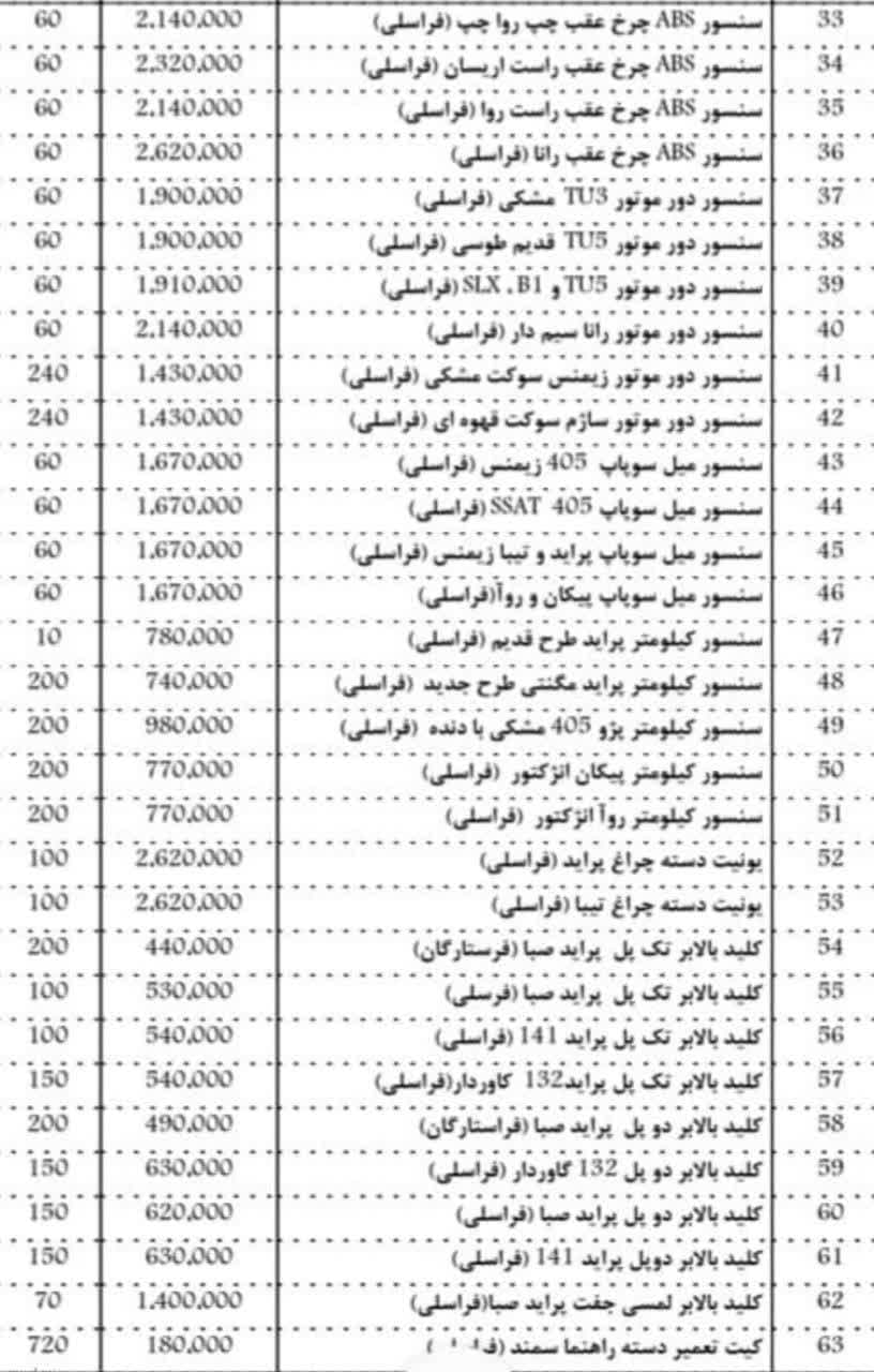 به دلیل نوسانات قیمتها امکان بروز رسانی آن وجود ندارد