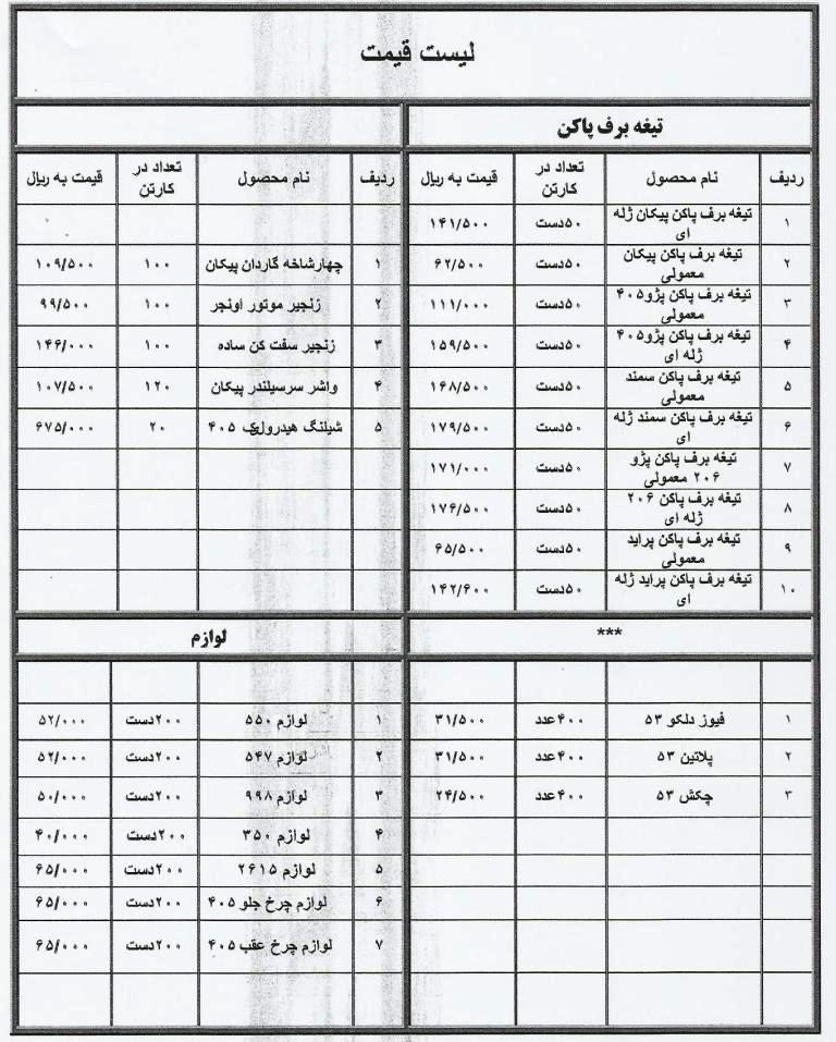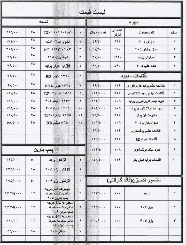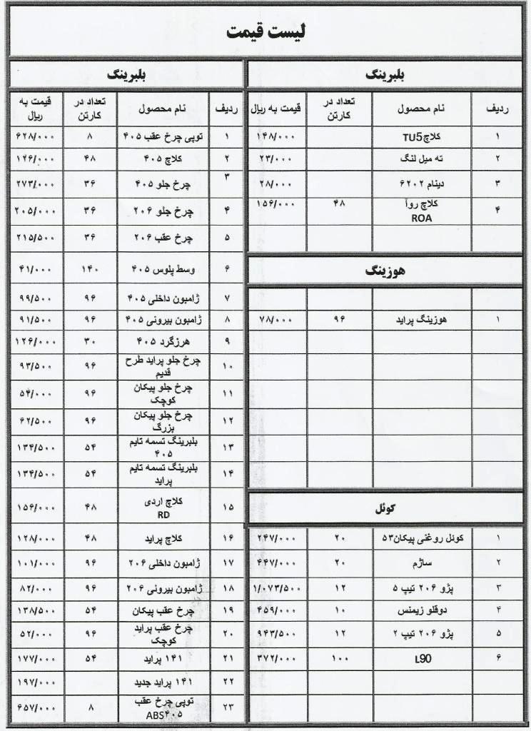 لیست قیمت انواع قطعات یدکی HPC