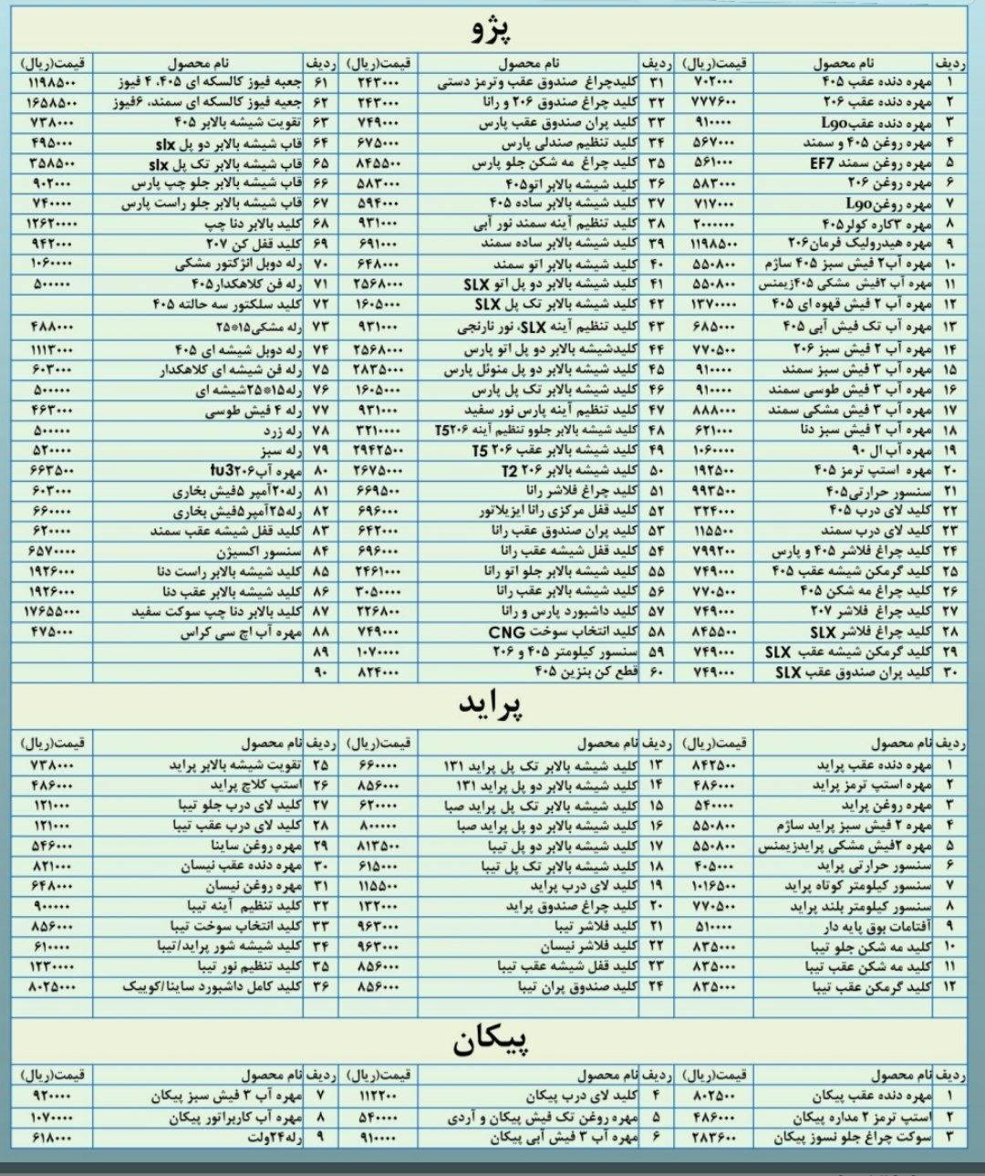 به دلیل نوسانات قیمتها امکان بروز رسانی آن وجود ندارد