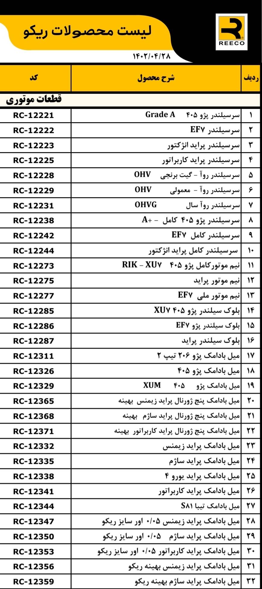 به دلیل نوسانات قیمتها امکان بروز رسانی آن وجود ندارد