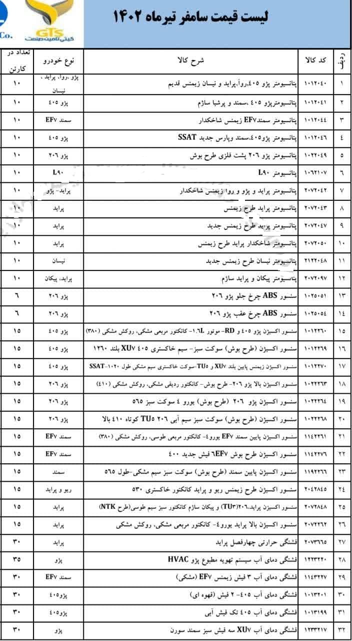 به دلیل نوسانات قیمتها امکان بروز رسانی آن وجود ندارد